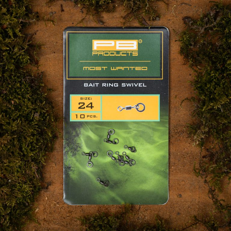PB Products Bait Ring Swivel er en lille, let svirvel med ring, velegnet til præcis og diskret montering af agn. Denne svirvel er ideel til brug med Chod rigs eller D-rigs og sikrer en naturlig bevægelse af agnen under vandet.